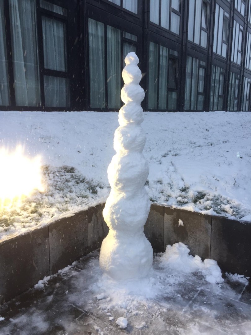 - the reason why i’ve been reluctant to leave my home is because i’d have to put on shoes cos it’s cold outside (at home in Malaysia it’s perfectly fine with slippers) but my classmate and i saw people building a snowwoman (we know it’s a woman because she has long hair. sorry i don’t have a picture) so i had to go out. In slippers. My extremities were so frozen that it hurt for a long while even when I got into the warmness of my house. so yeah. DUMB. But also, because of the freezing cold, i walked more normally in the snow cos my feet were numb.